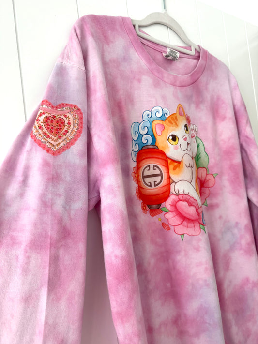 Hand Tie Dye - Long Sleeve Tee - Neko Lucky Cat